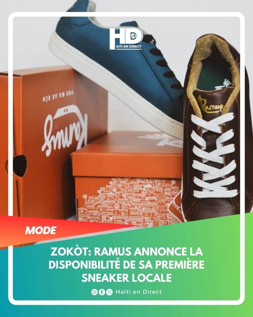 La marque haïtienne Ramus a annoncé, le dimanche 15 mars 2026, sur ses réseaux sociaux la disponibilité de Zokòt, présenté comme leur première sneaker haïtien fabriqué localement. Dans son message, Ramens Elisma, PDG de la marque, a expliqué que Zokòt est en développement depuis 2021 avec son équipe.